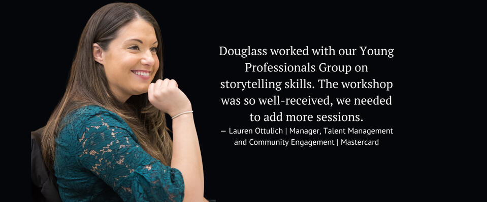 Prior to co-founding communicate4IMPACT, a business storytelling training and coaching firm, Douglass led thought leadership and executive communications at Mastercard headquarters in Purchase, New York. Before making the move to Mastercard, Douglass spent two decades in Washington, DC, working on Capitol Hill in senior positions in both the U.S. Senate and the U.S. House of Representatives. Immediately prior to Mastercard, Douglass was senior advisor and speechwriter for former U.S. Senator Olympia J. Snowe.Douglass also serves as a quarterly guest lecturer on speechwriting and storytelling at Columbia University's School of International and Public Affairs (SIPA).